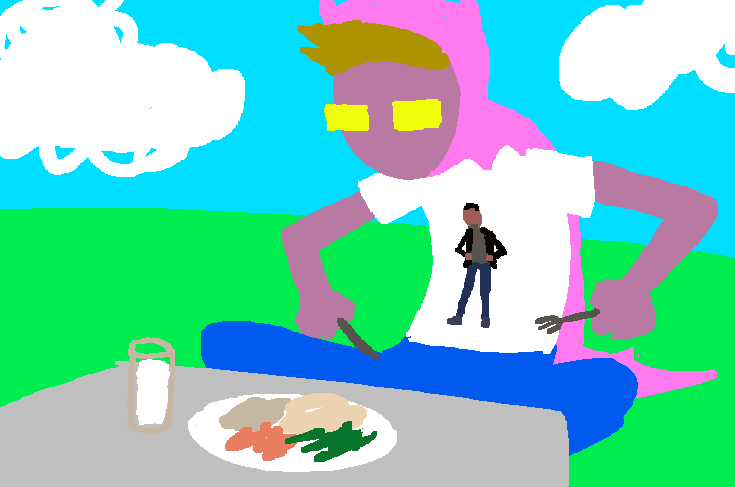 You chow down on ONE (1) HOT TURKEY PLATTER WITH MASHED POTATOES, GRAVY, STRING BEANS, APPLE SAUCE, AND ONE (1) GLASS OF MILK.
